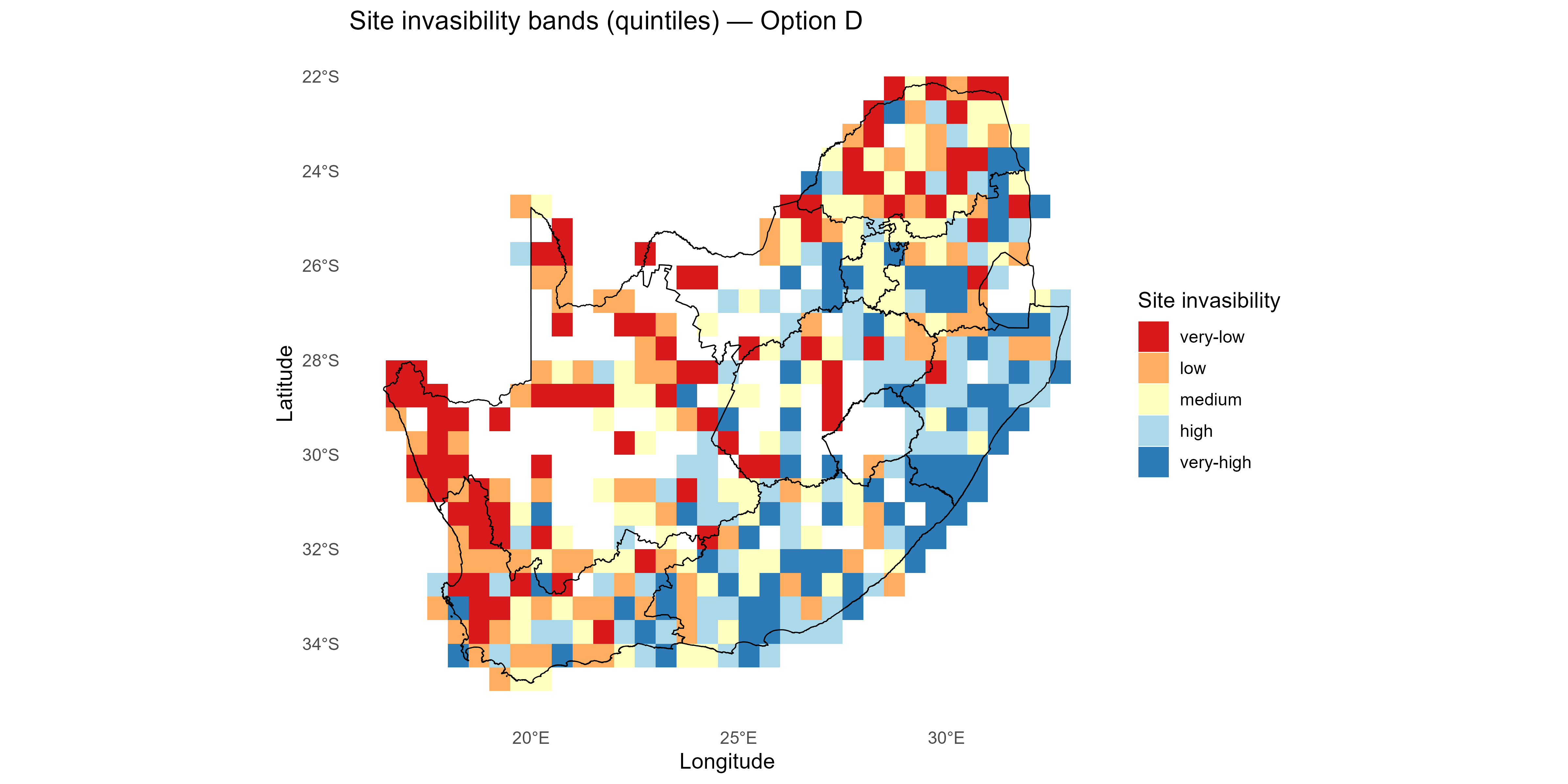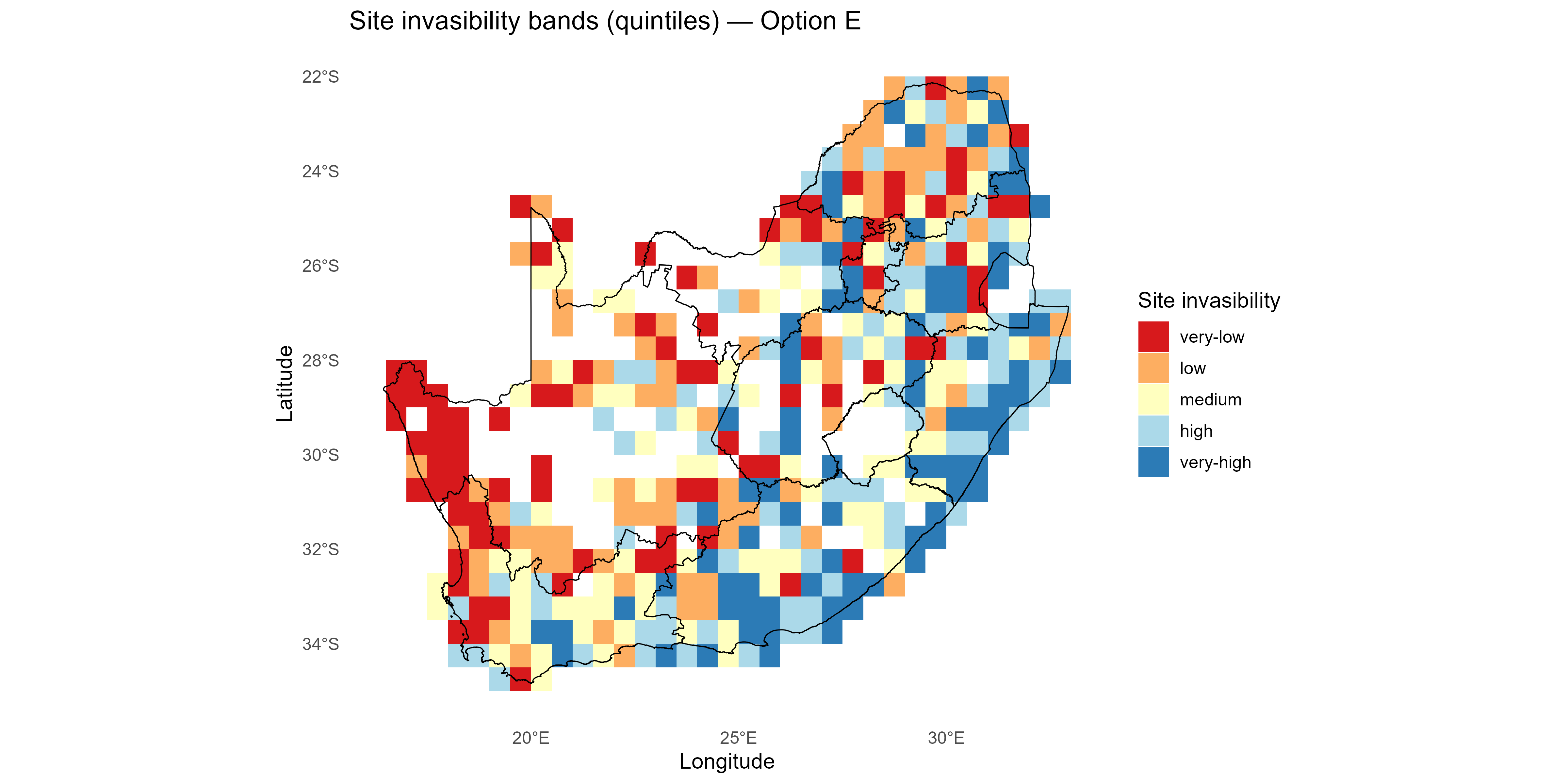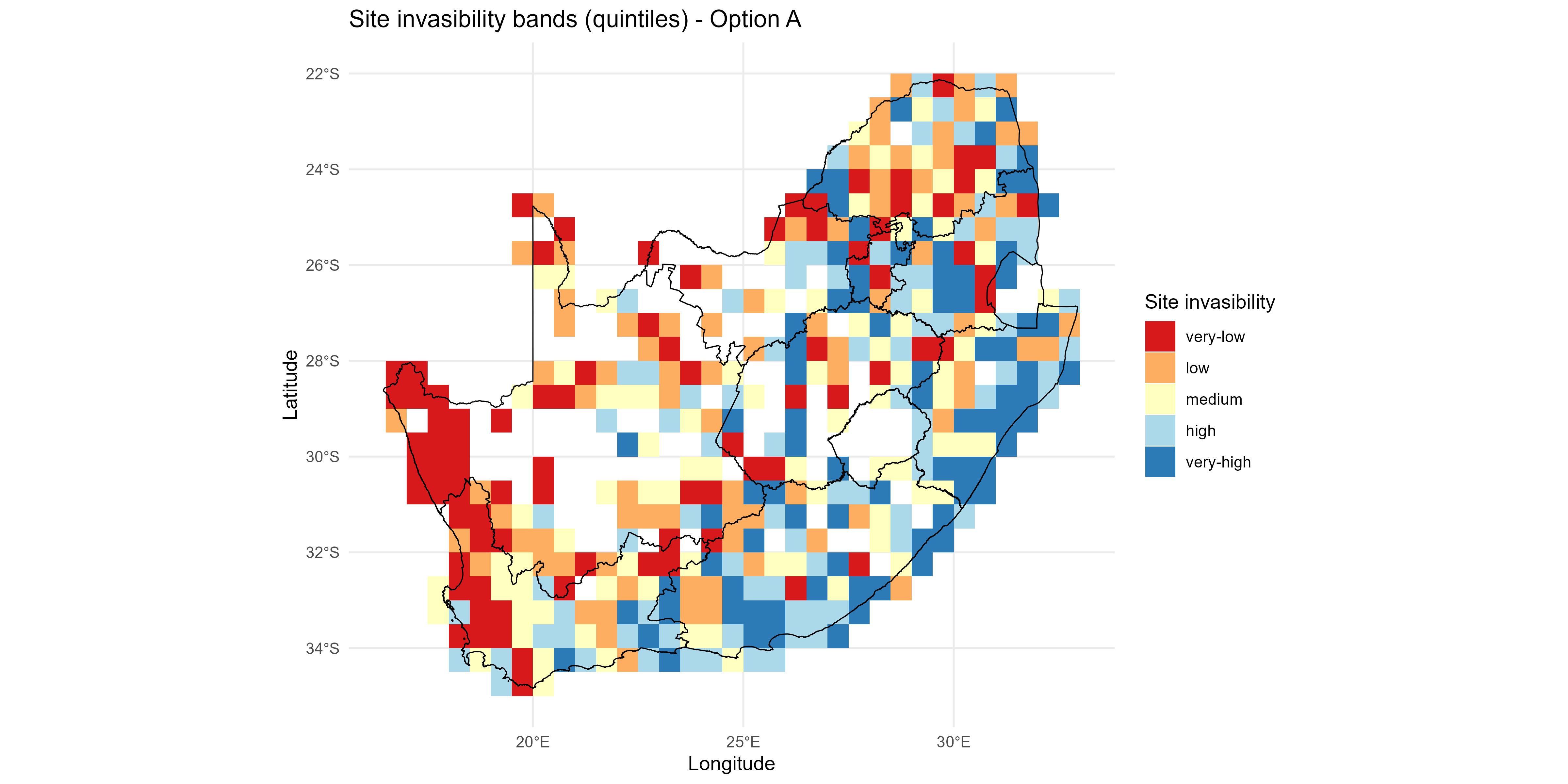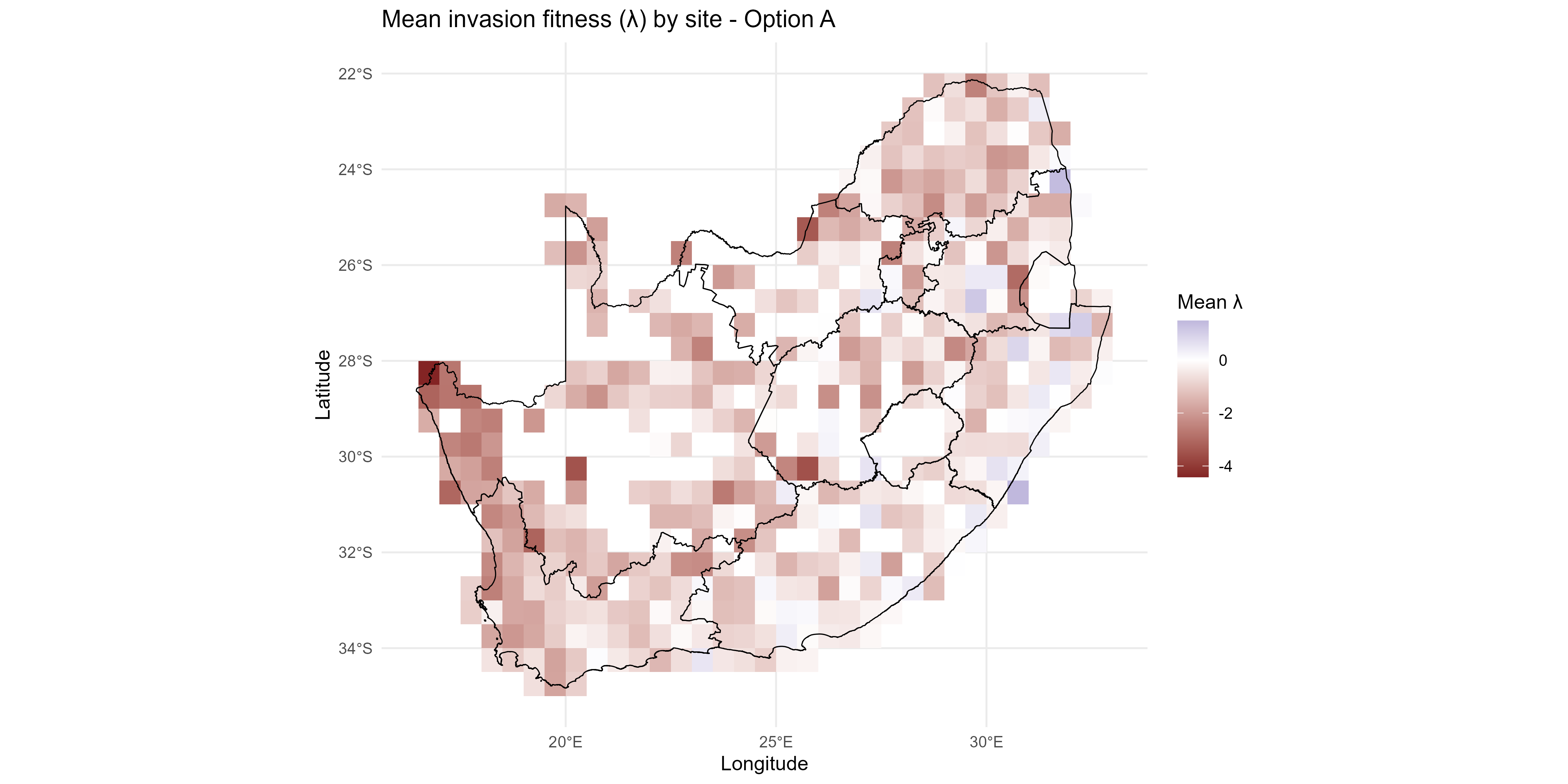 The invasion fitness output can be aggregated to site and species level summaries of invasiveness \(V_i\) & \(T_{ik}\) and invasibility \(V_s\) to provide interpretable metrics for mapping and prioritisation;