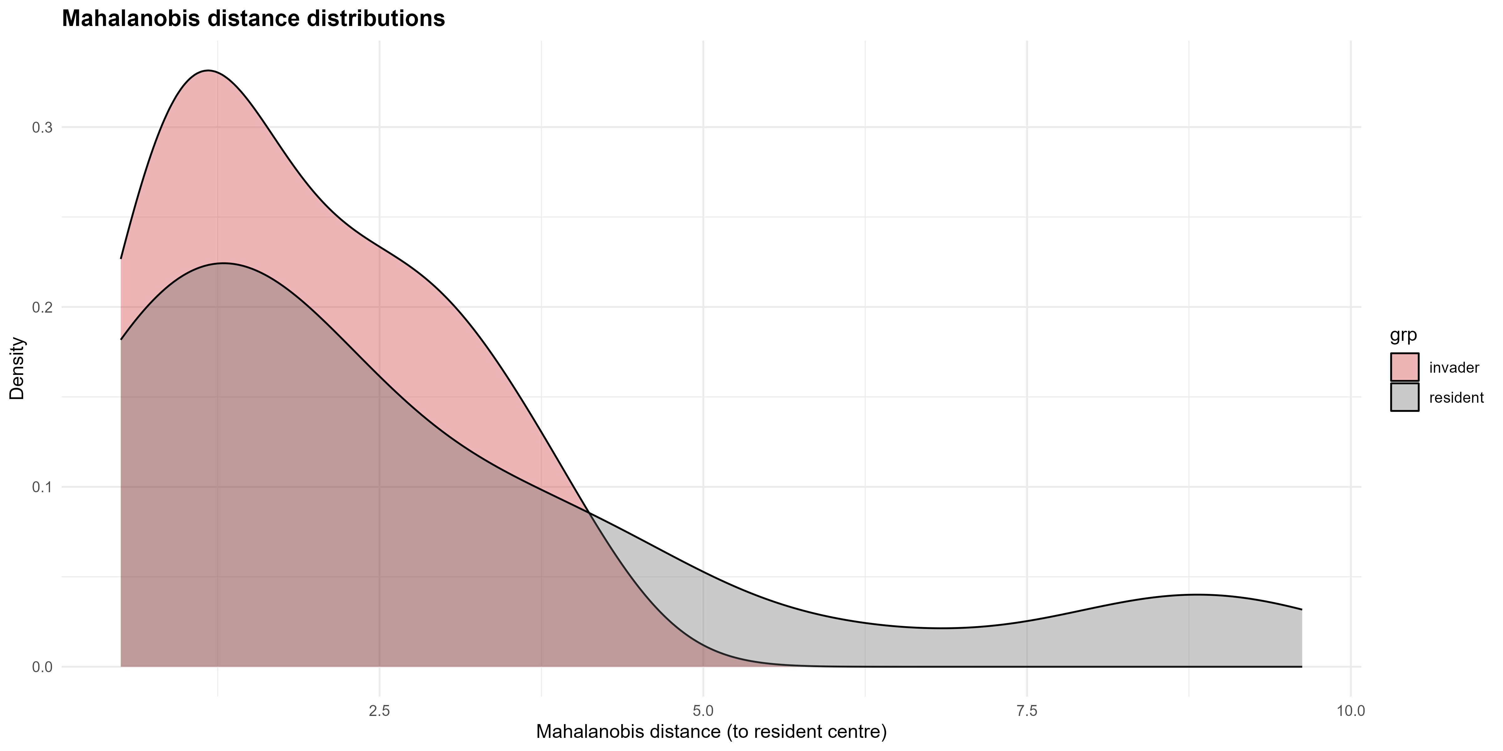 Means/SDs computed on residents only | Used to standardise invader predictors, preventing leakage |