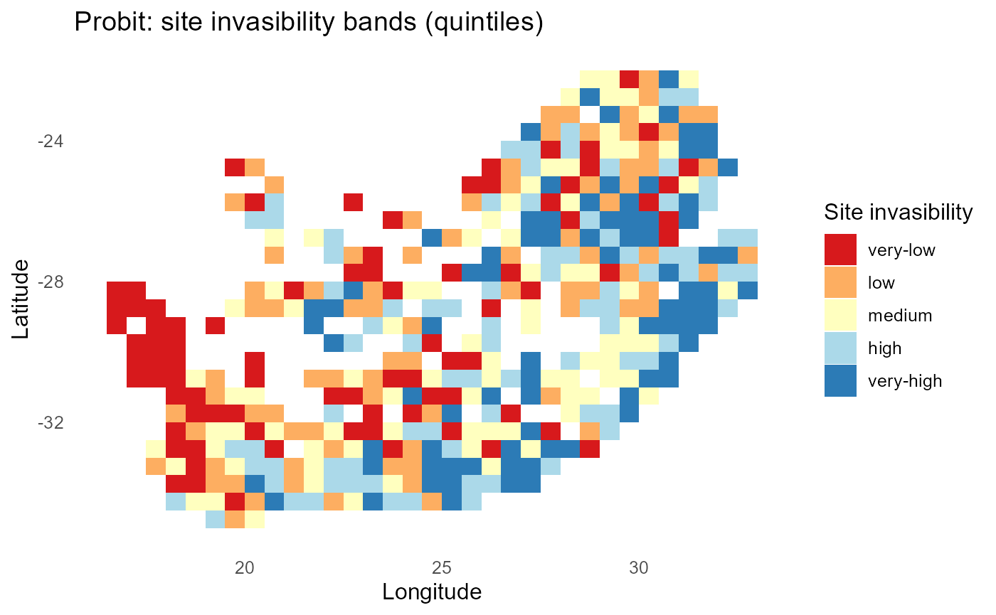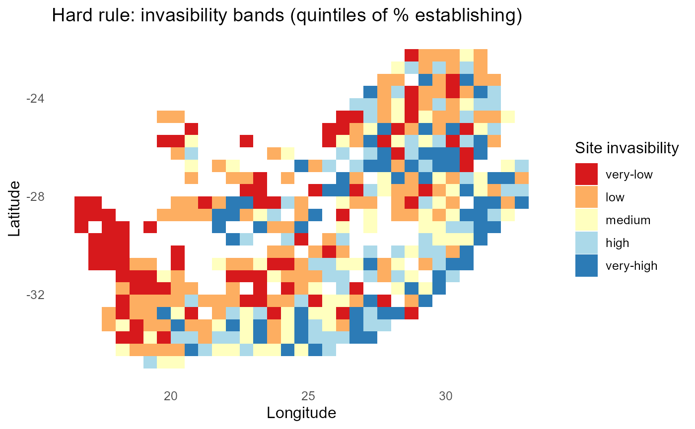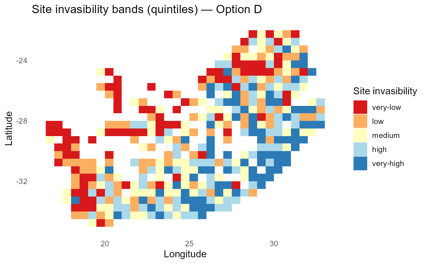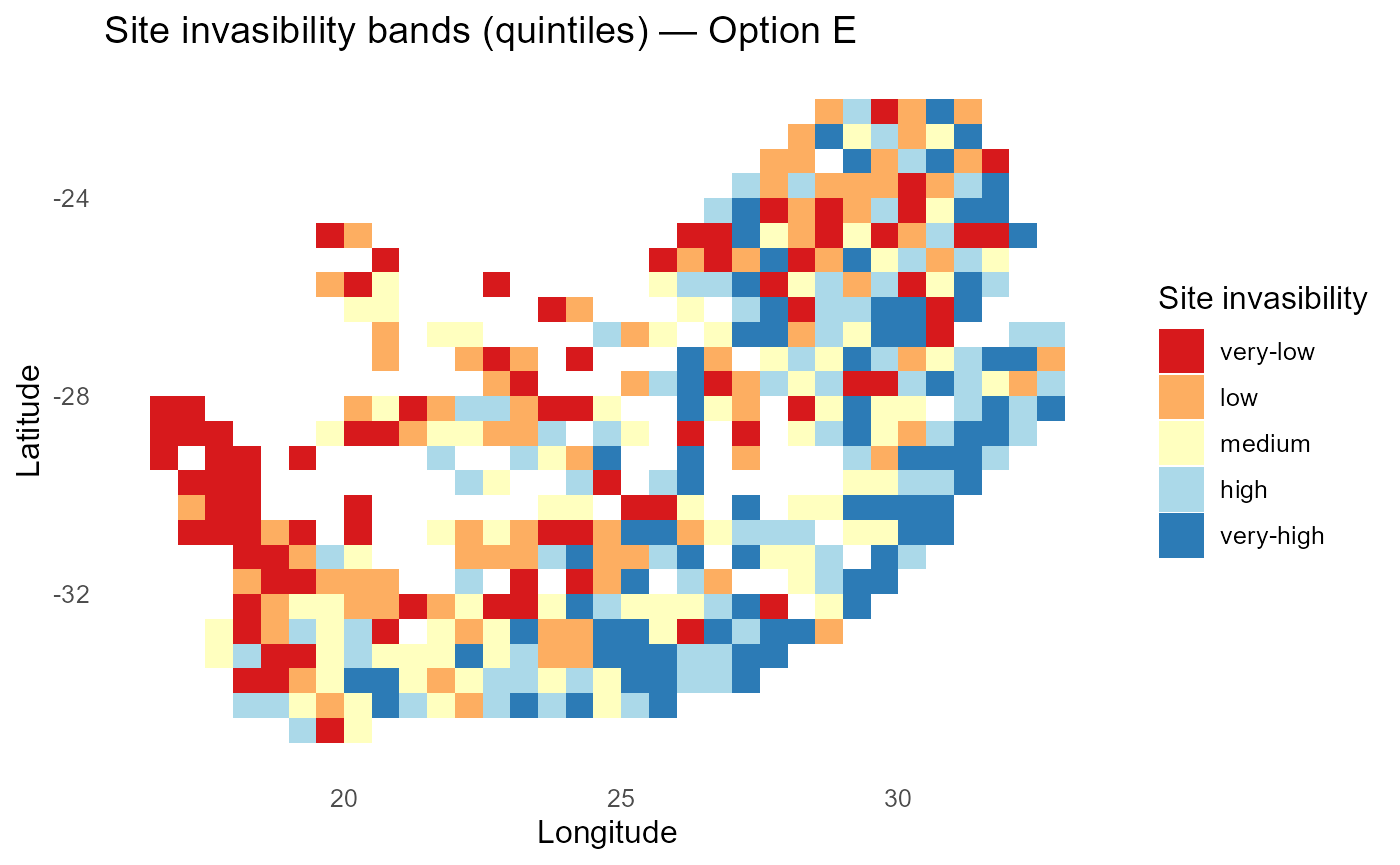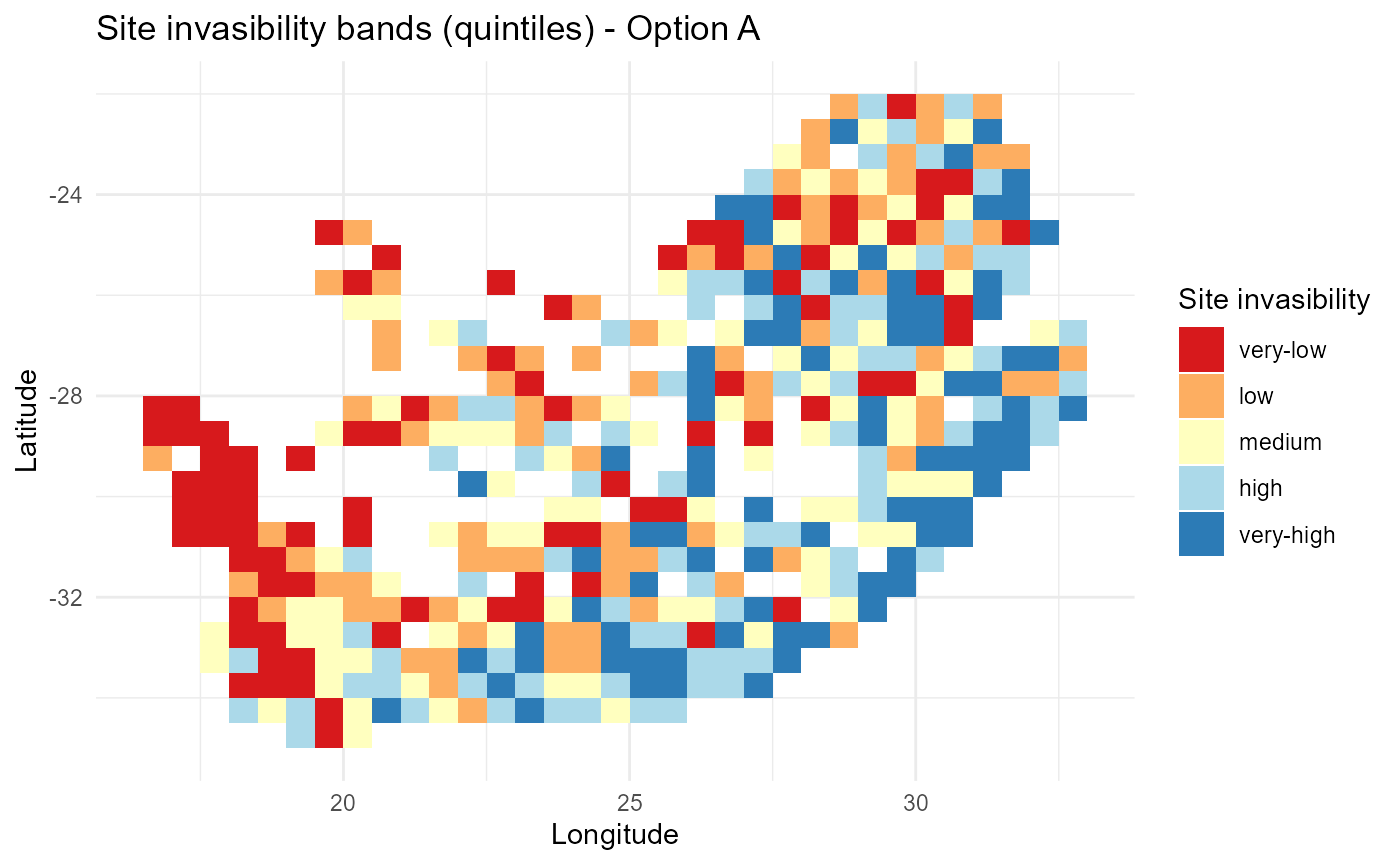 ggplot2::labs(title = "Site invasibility bands (quintiles) - Option A",